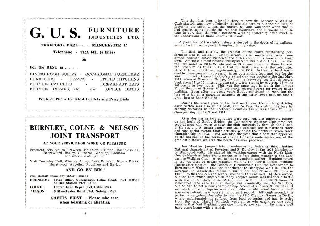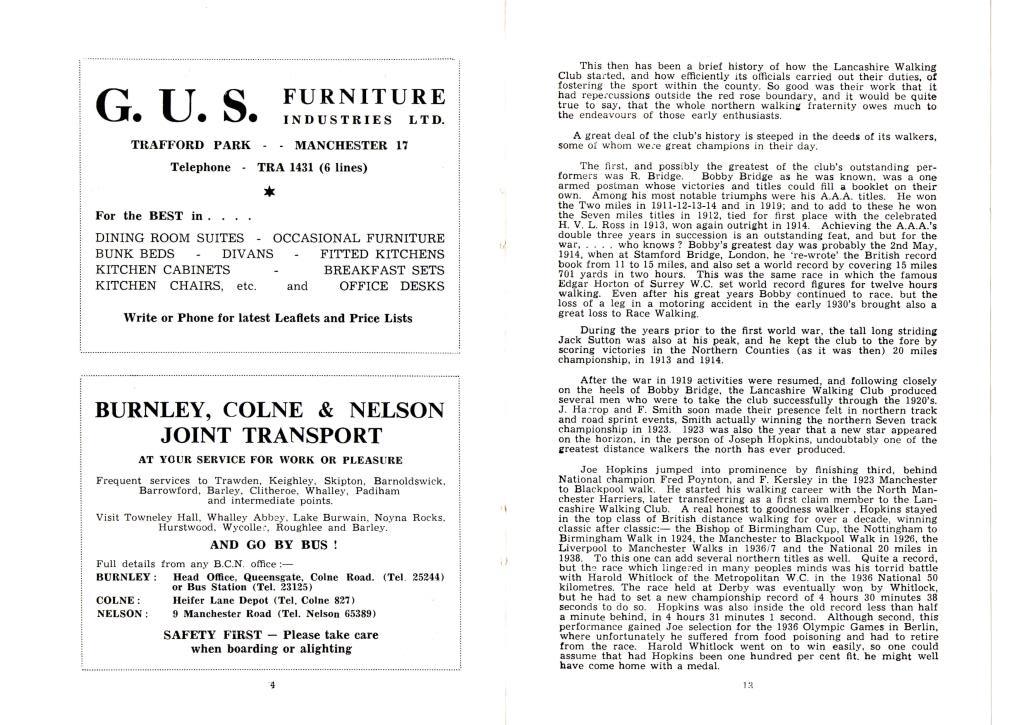 Bobby Bridge was an internationally known walker. Although a member of Pembroke he competed mostly under Lancashire Walking Club which catered for his specialism. He represented Britain at the Stockholm Olympic Games and reportedly held several world records in his day. A tragic accident when he was still competing in 1926 terminated his career. Thereafter he remained steadfastly supporting the club as an official until his death in 1953.