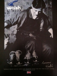 We would like to add race walking to that list. From the late 60’s Norman turned his skills to designing and making a bespoke race walking shoe, which was taken up by many, especially in the North. If my memory serves me well I think Ron Wallwork made the first contact with Norman and was instrumental in the birth of the Walsh shoe. At the time Norman worked out of a rambling terraced house on St Helen’s Road, Bolton. To enter its portal was to be drawn into a scene of creative chaos, highlighted by a technicolor of possible uppers strewn on the floorboards, permeated by the intoxicating aroma of leather, suede, rubber and glue. Amidst which Norman worked his magic, happy to meet your requirements in terms of size [drawing around your foot] and colour. I’m pretty sure Norman shod most of the Lancashire WC team that won the 1970 McSweeney Trophy for the best all-round team in the country, whilst a couple of us carried his name into international competition. I’m almost certain too that Ron Wallwork set his 1971 UK 2 hours record in his favourite pair of Walsh’s. And, whilst far from being in the same league I managed to win the British Masters 65-69 5,000 metres the other week in Horwich, wearing a pair of Walsh shoes, made on Norman’s original last, now sold as a ‘designer’ shoe! Norman might well have chuckled at the thought. Finally it’s illuminating to note that you could have the shoes mended over and over again. Recycling, long before the word was coined – a far cry from most modern trainers!