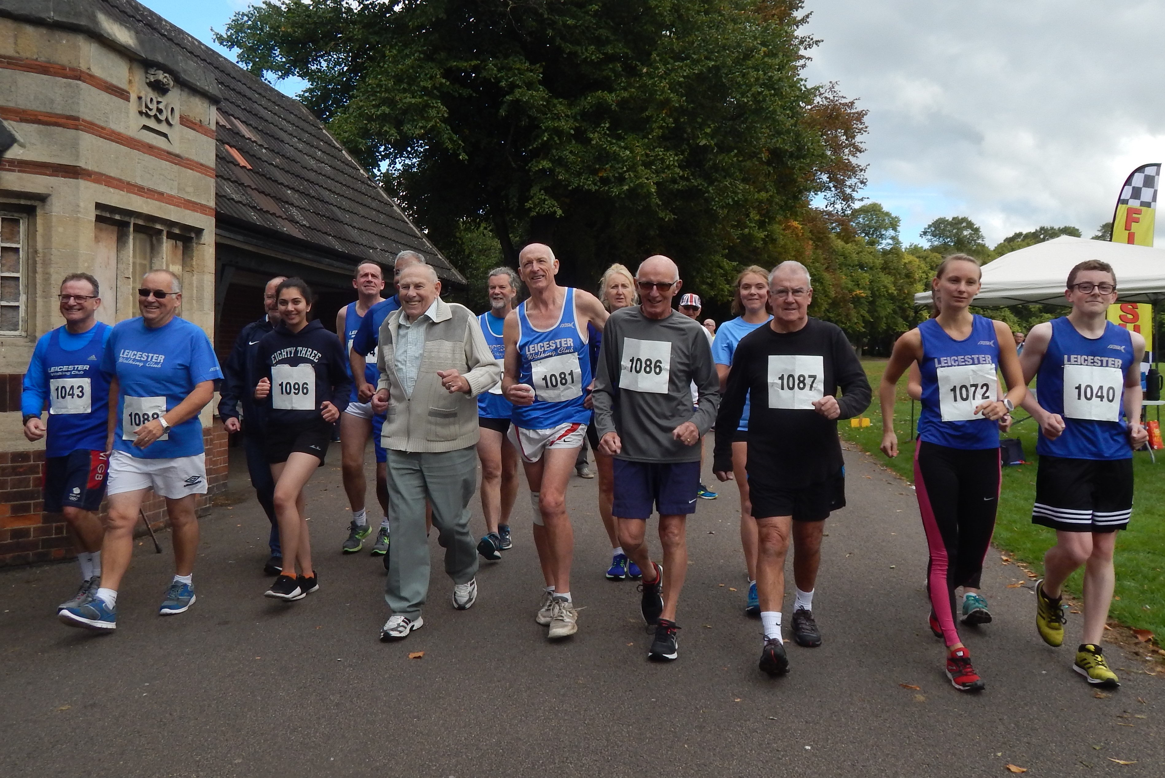 More by luck than accident, I was chuffed to find myself in the splendid grounds of Abbey Park for the celebration of Leicester Walking Club’s 90th anniversary, organised in conjunction with the Jim Sharlott 10k Open and BMAF 10k championships – very pleased too to find myself in the comforting company of Ron and Joan Wallwork, together with the Crompton clan.