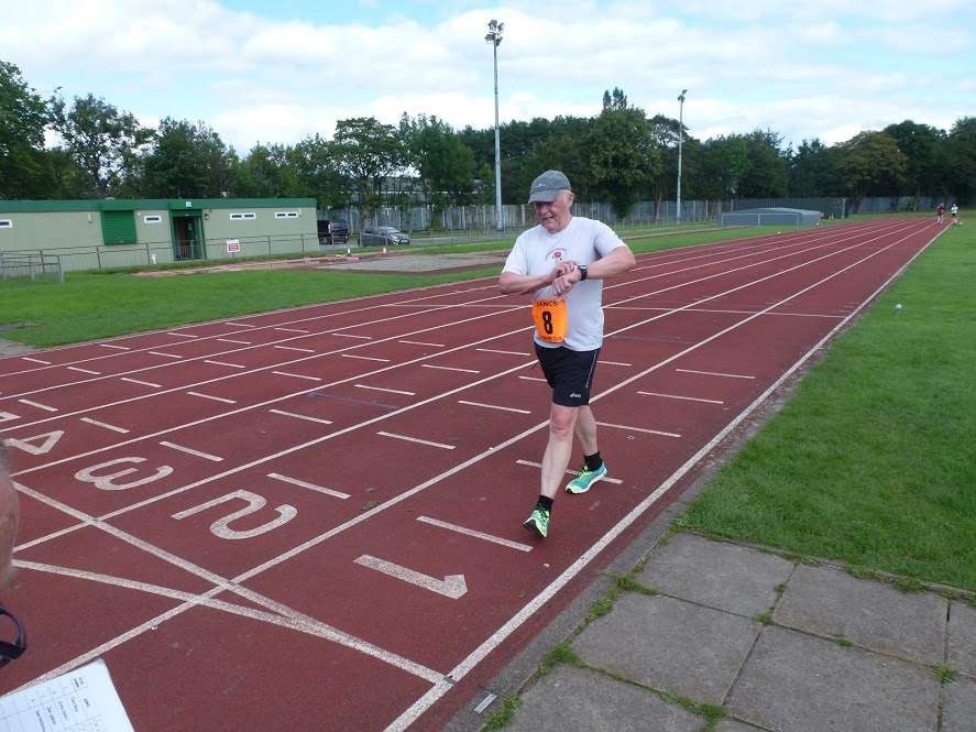Nice weather but a very small field as Adrian and Sailash were in the Isle of Man and others decided to give it a miss. The race was almost more interesting as Roy Gunnett, Joe Hardy, Ian Hilditch, Pat Evans and John Crahan toed the starting line. At the end of the first lap (2.8 miles)only 42 seconds separated the first 4 and everyone was in sight. As the second lap unwound the places stayed more or less the same but Roy managed to squeeze out a small gap and finally outwalked the field by 12 seconds. Ian and Pat had a bit of a battle in 3rd and 4th place.
