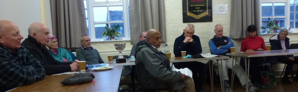 After recovering from their efforts the 9 walkers and helpers (marshals, timekeepers and recorders) retired to the school premises and feasted on a selection of hot pies and sweet sundries including a very tasty M & S Christmas cake supplied by our president Tony Taylor who whilst not in the UK on the day, promised to match our walkers with a 10k fast walk in his Cretan retreat. Another club walk in the bank and everyone will look forward to the Sam Shoebottom 10k next year on 8th February.