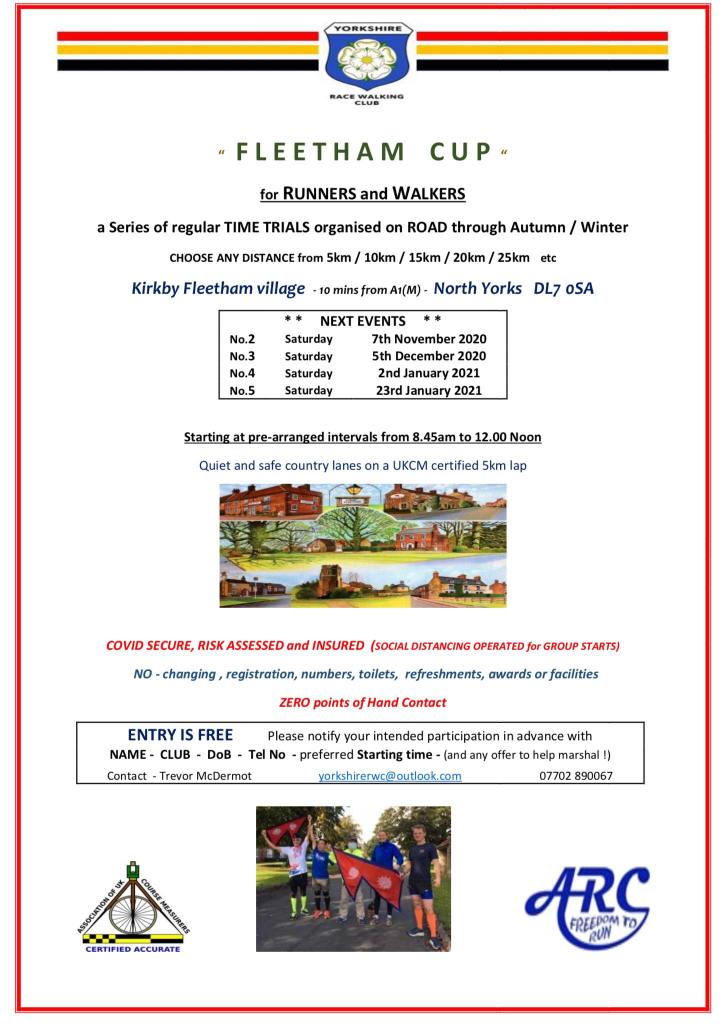 Far too often we find race walking hidden away from public view, on closed circuits, in its own insular bubble with little or no prospect of outside interest, understanding or appeal. The ‘Fleetham Cup’ series is therefore intentionally based to fill the gap left by our beloved, much-missed Catterick parkrun, and can only happen due to our many friends from there and, above all, the support and help of a quite wonderful core team of enthusiastic volunteers.