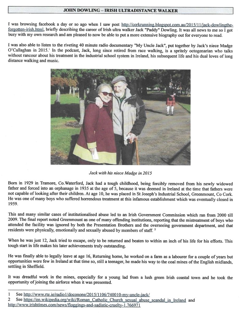 Ray Flynn – R.I.P. John. Was a teammate on the Irish Race Walking team. He was so proud to represent the country of his birth. Proud Waterford man.