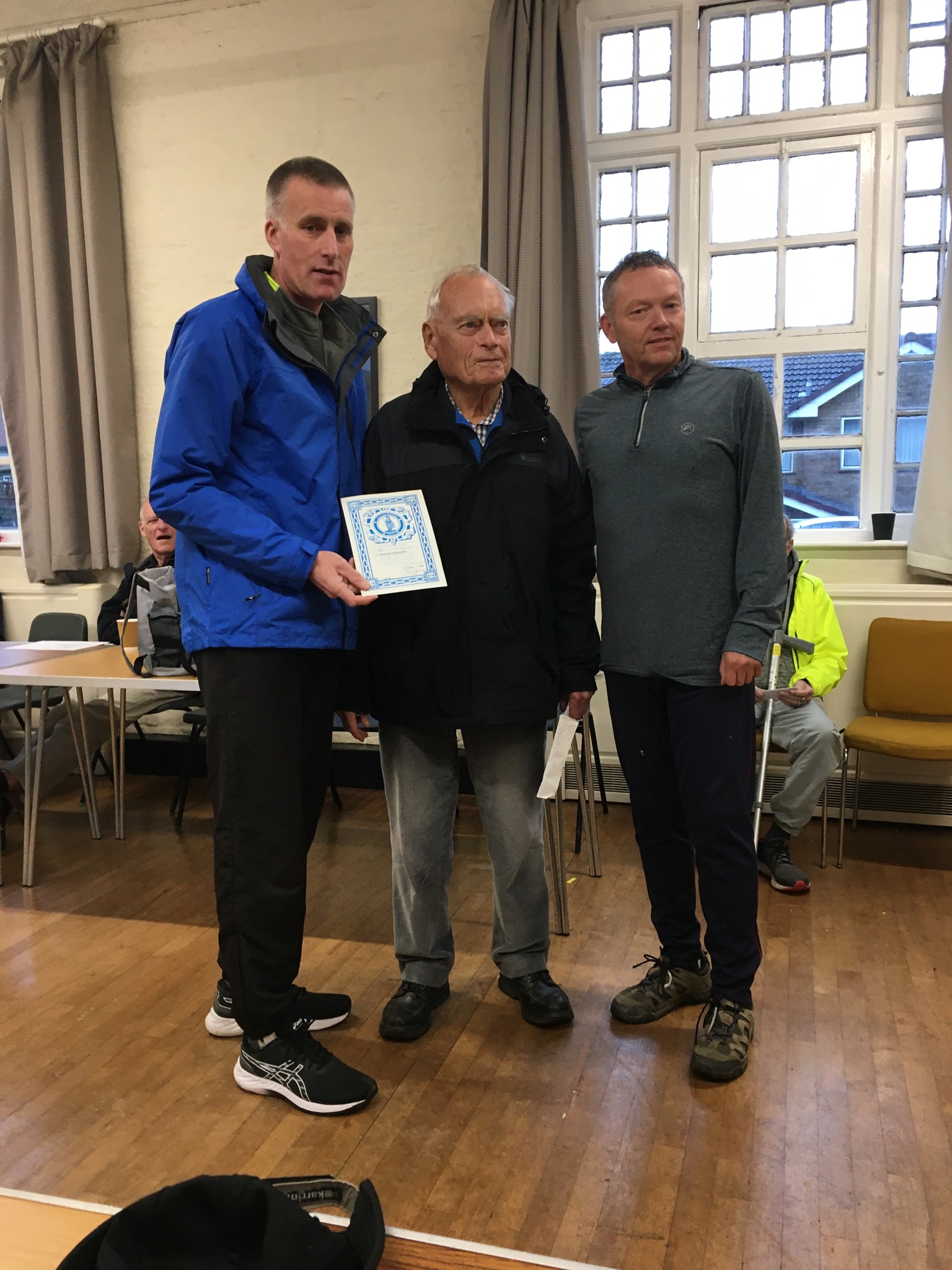 Chaired impeccably by Dave Evans, minutes taken diligently by Tony Bell, our Annual General Meeting was dominated by one figure. Unsurprisingly this was the always unassuming Adrian Edwards, whose courageous feat in becoming a Centurion was hailed by Eric Horwill as one of the gutsiest he had ever witnessed. And Eric has competed in and officiated at more long-distance events than probably anyone else in the country. His praise means a lot. Marking this remarkable achievement Adrian collected both the Cliff Royle and AJ Taylor trophies. In addition, he was presented with the priceless Centurions’ certificate. of membership by Eric and Martin Fisher, the present Centurions’ President. Everyone was unanimous in their respect for Adrian’s endeavour. Believe it or not, word has it that he has his sights set on further long-distance challenges. To round matters off Adrian was elected to be the Club’s President for 2022/2023.