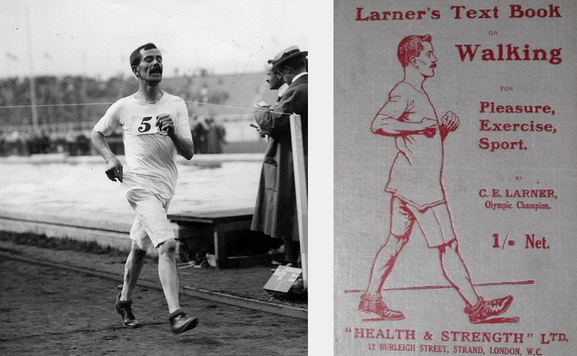 Although born in Berkshire in 1875, he took up walking with the club in 1903, aged 28 and soon showed an aptitude for the event, winning four AAA titles in the following couple of years, including nine world records. He was a Brighton Police Constable and soon found that his duties prevented him from serious walk training. The Chief Constable was made aware of this and in 1906 the County Borough of Brighton Watch Committee gave Larner special dispensation, to train for the London Olympic Games, which were to be held in 1908.