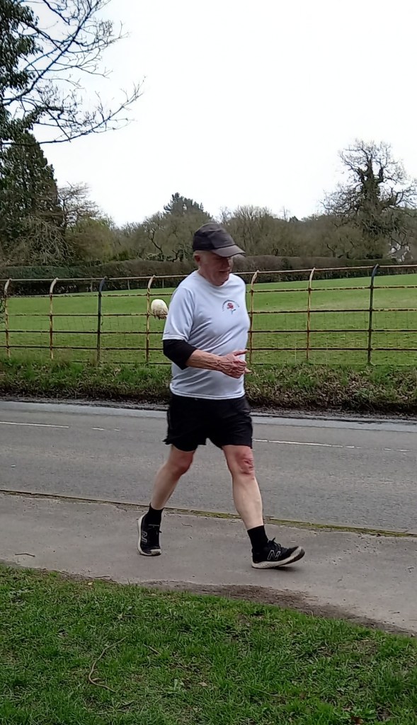 With a cool edge to the weather, a field of nine walkers faced the starter on April Fools’ Day. The presence of Graham Jackson (Northern Vets) and Dave Hoben (Surrey WC) certainly added more interest to the proceedings. Dave is a regular visitor to our events and on this occasion managed to out-manoeuvre Network Rail which was due to suspend rail services until fairly recently.