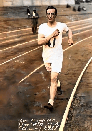 As it is, whatever Keely’s success, which seemed to be written in the stars, I had decided a month ago to draw attention to a fascinating coincidence. Exactly 100 years ago in the very same city, Paris, a Leigh Harrier, Reg Goodwin had taken the silver medal in the Olympic 10,000 metres track walk. In his magnificent labour of love, ‘A Pictorial History of Leigh Harriers AC’, John Taylor provides the following background and detail on Reg’s athletic career. I am profoundly grateful for his generous permission to use this material.