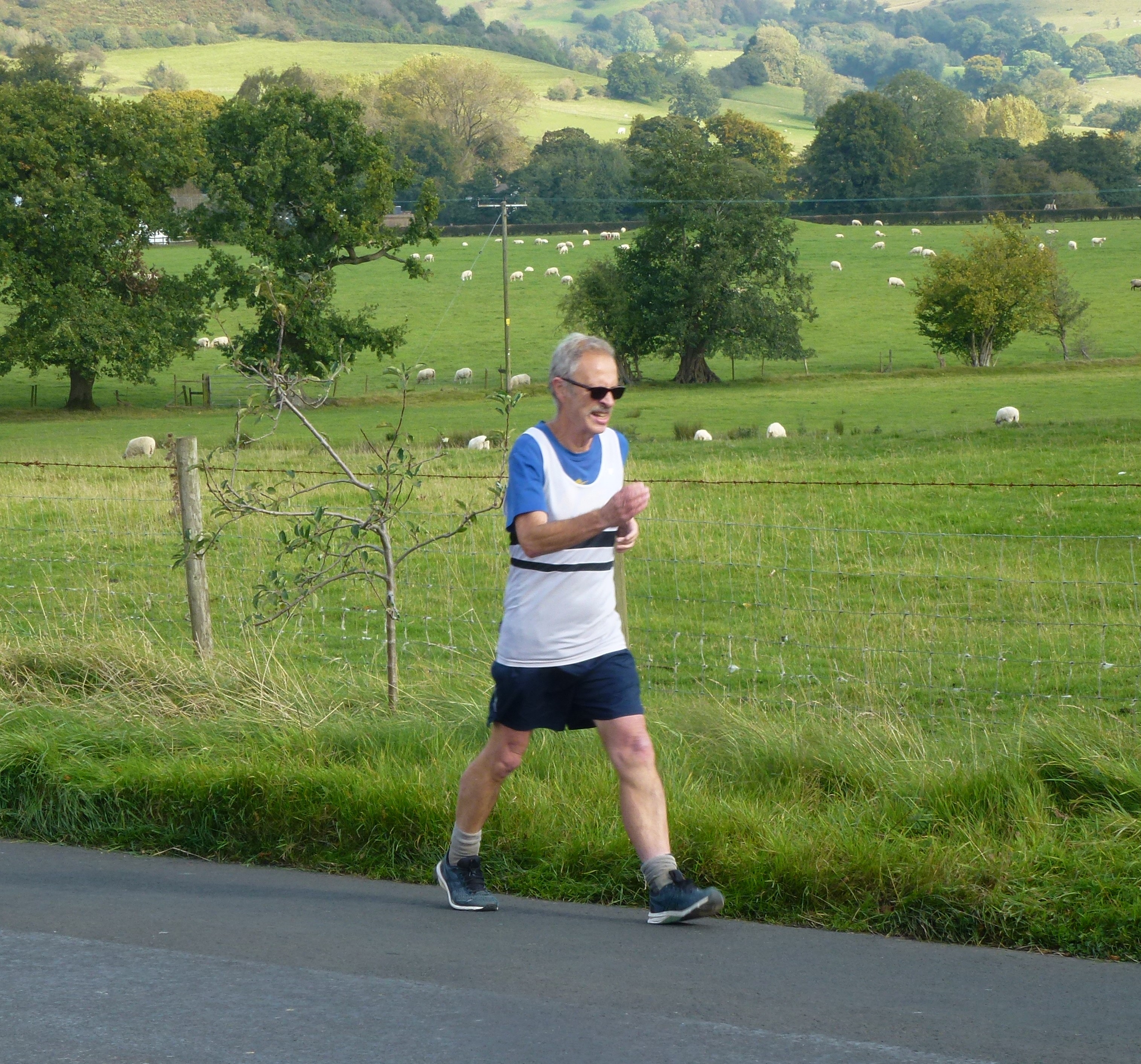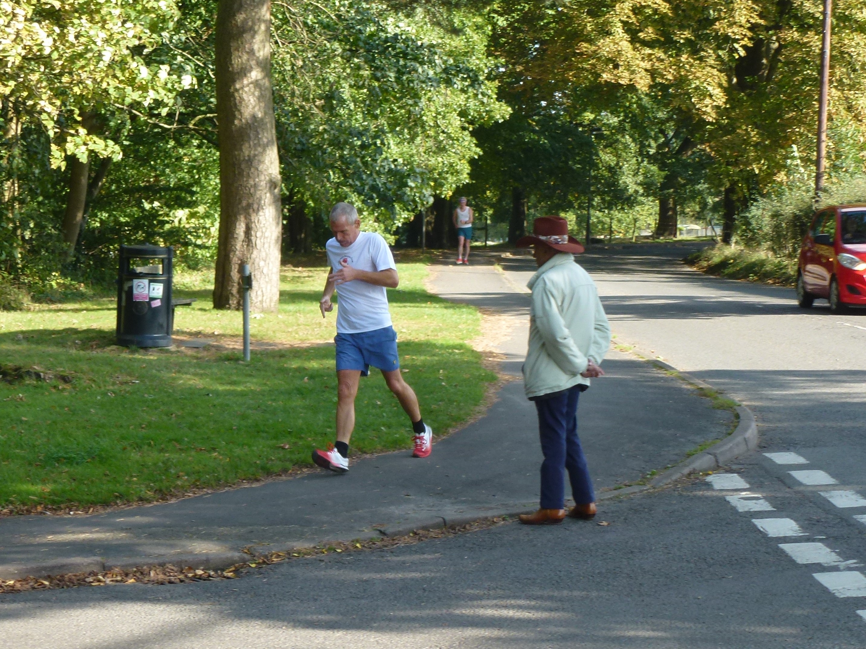 Bets were laid(hypothetically) as to who would lead the field to the end of the first circuit and as the first two individuals entered the home straight it was Tony Bell closely followed by Nigel Shaw. No money was won or lost! Roy Gunnett appeared at number 3 employing his fluid technique but maybe suffering a bit from his recent long distance efforts.