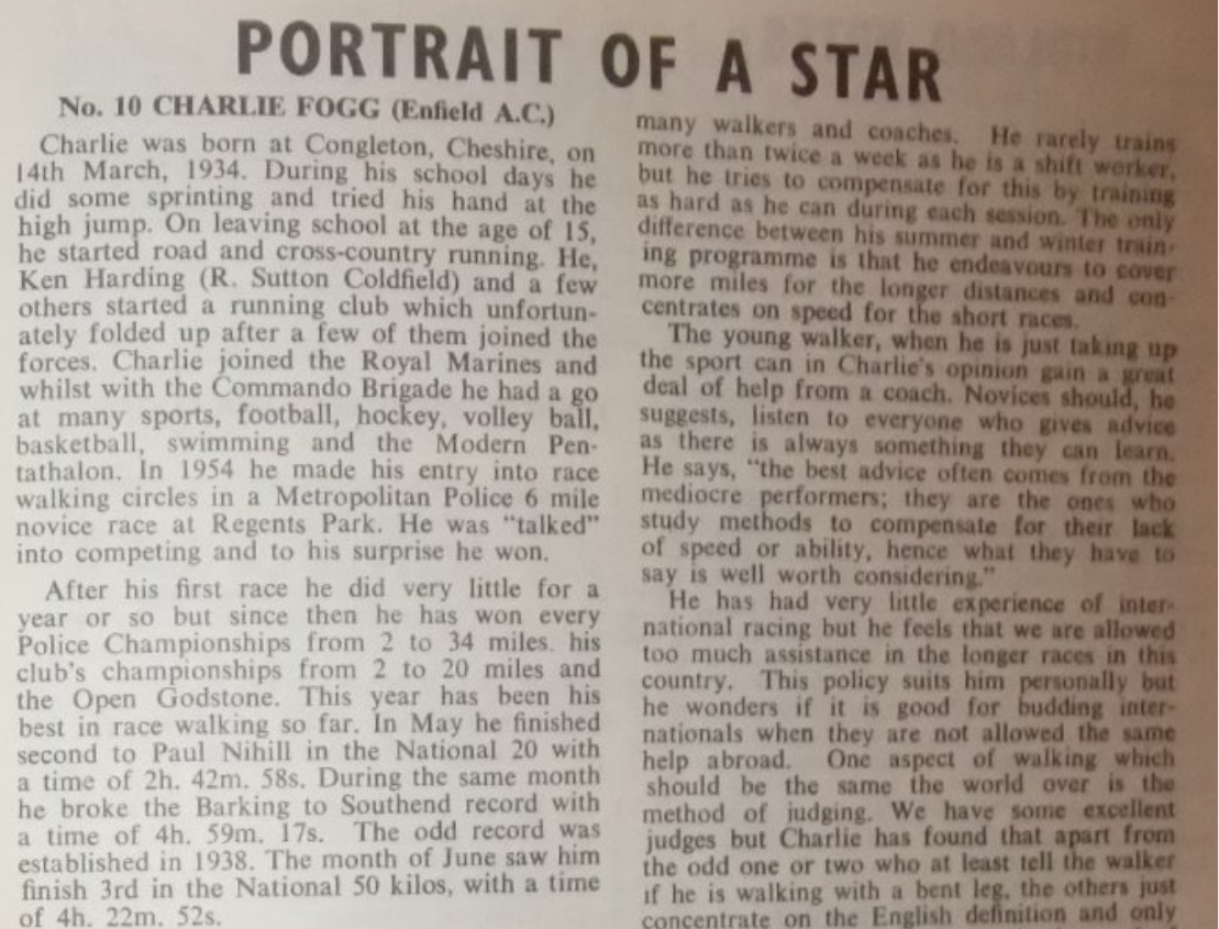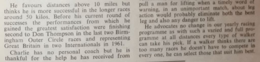 I was saddened to hear about the death of Charlie a few years ago – a great character and the ‘iron man’ of UK race walking.