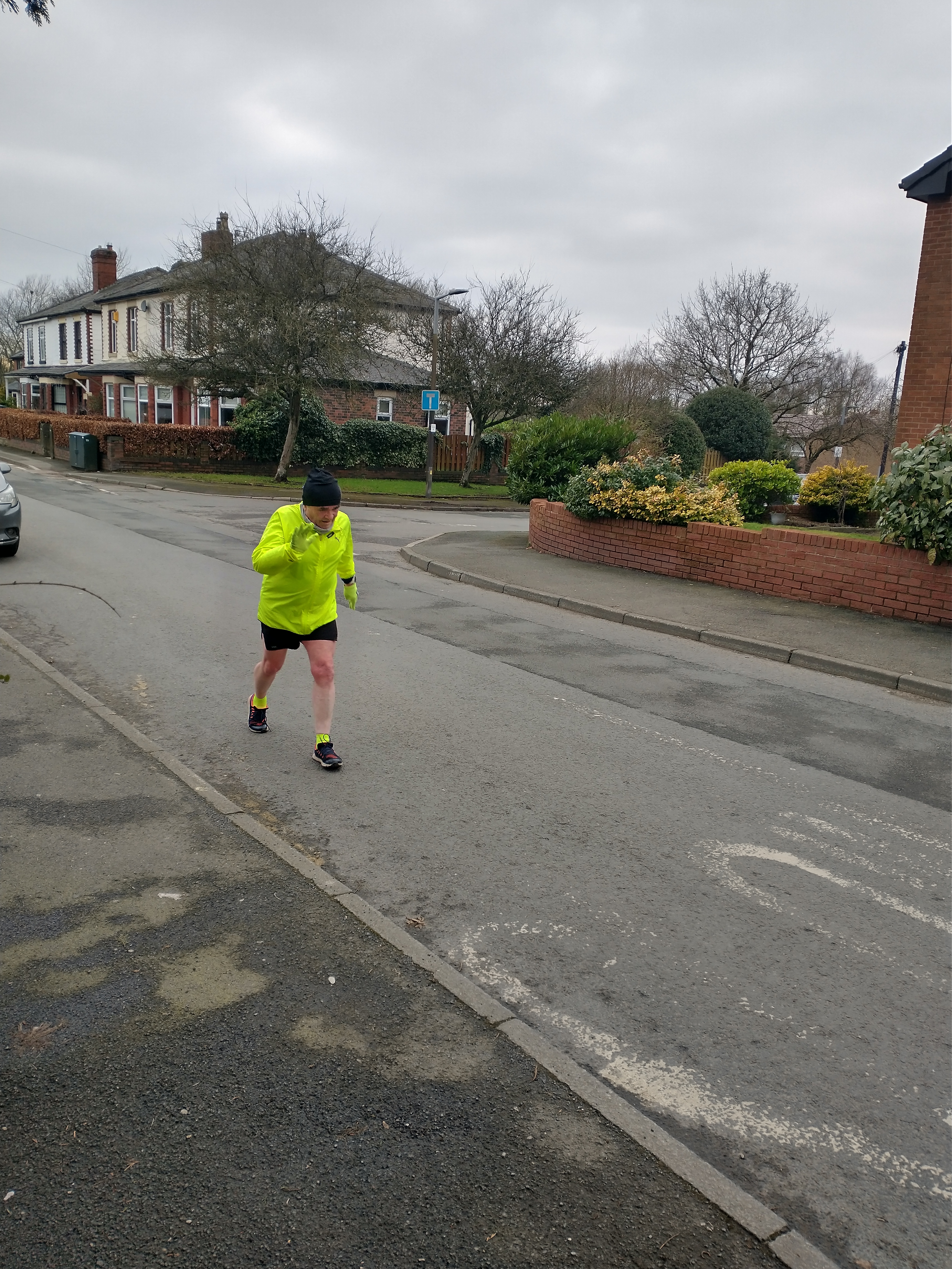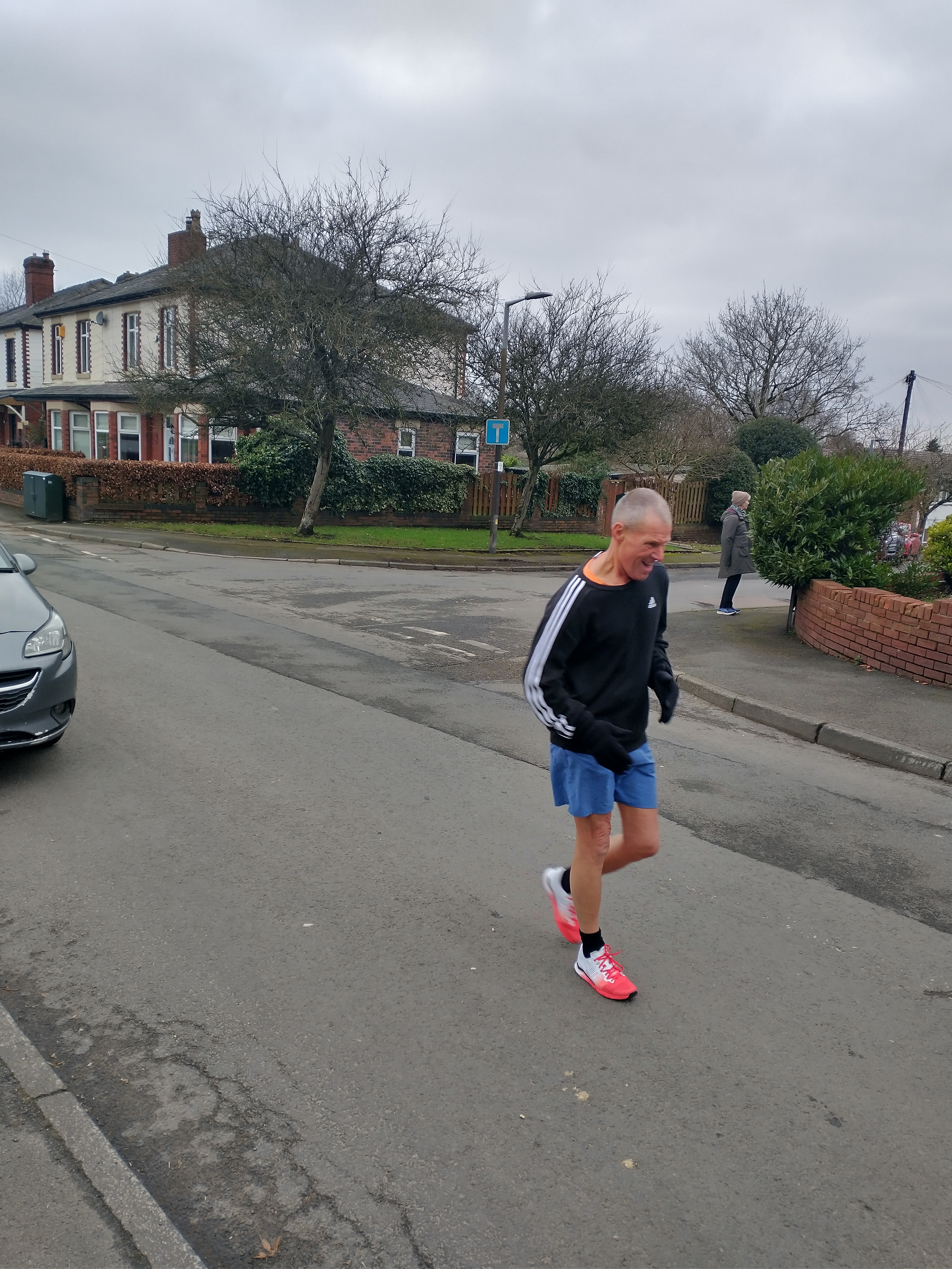 The first live race of the new year at our most regular venue brought together 12 stalwarts in what could be described as cool conditions, thankfully not accompanied by snow or rain. A welcome back to Adrian Edwards who is returning to training after a short break and it was he who lead the field of 9 aspirants across the first stretch of 5k. Heaton Park , where we have our “out” post , was very busy with the Manchester cross country league plying their trade and over running the paths and park roads.