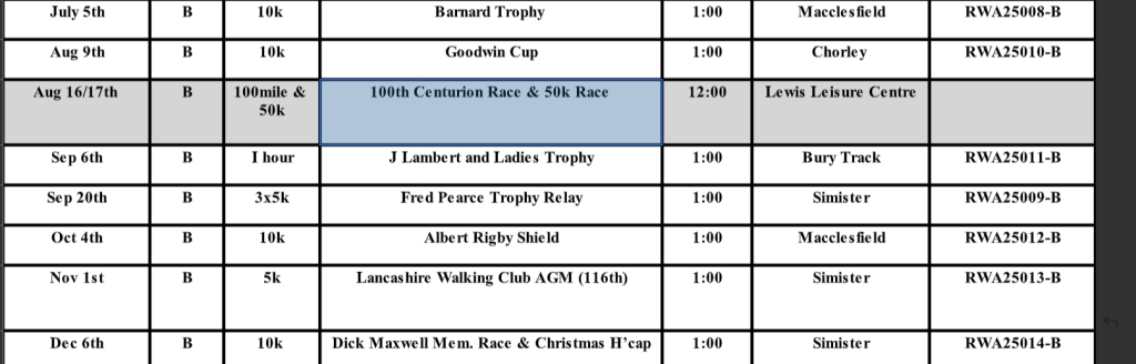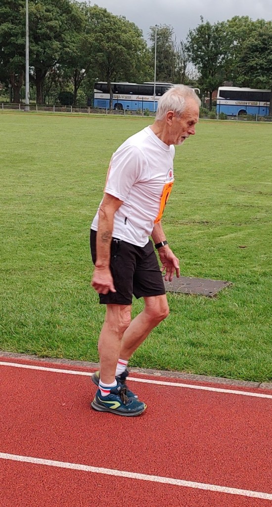 Most attendees at the Dick and Zena 10/5k races endured wet and windy conditions en route to Bury but as the appointed hour arrived the clouds dispersed and it was all but dry as the whistle was blown. Track races are a different animal to those normally experienced by the majority of the Lancashire walking club supporters with everyone having to make a conscious decision to set a good pace. All other club races involve a number of challenges where terrain makes the decision for you.