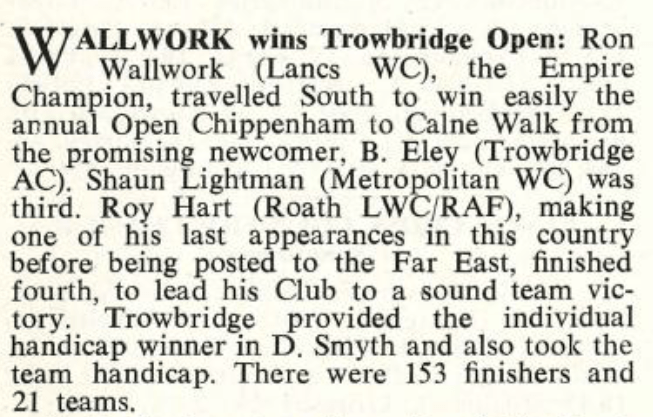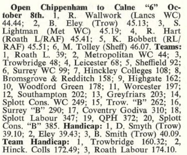 Whilst Ron was still very much flying the Lancashire flag on his own, it’s sobering to recognise how far he travelled from Bolton to Trowbridge to compete. And, back then, it was a bloody long way!