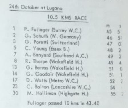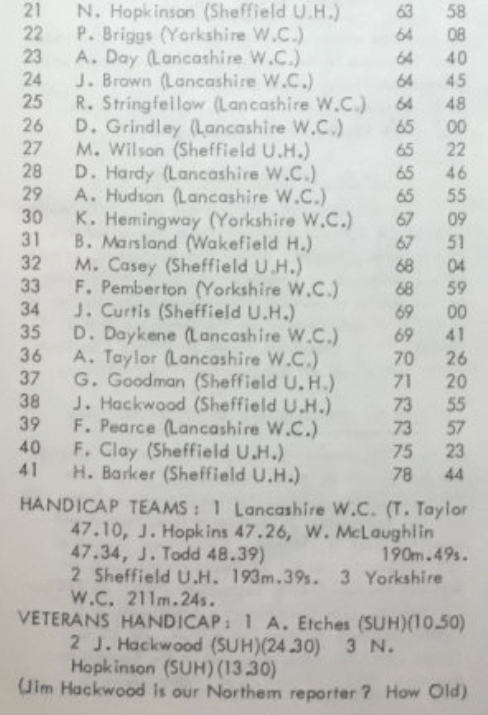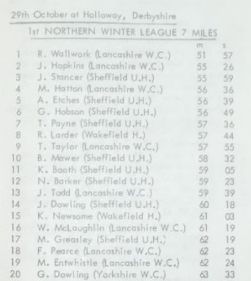 Hidden away here in 14th position is John Warhurst of Sheffield UH, who was to progress to being one of the sports’ great all-rounders. I think this might have been his debut in an open race.
