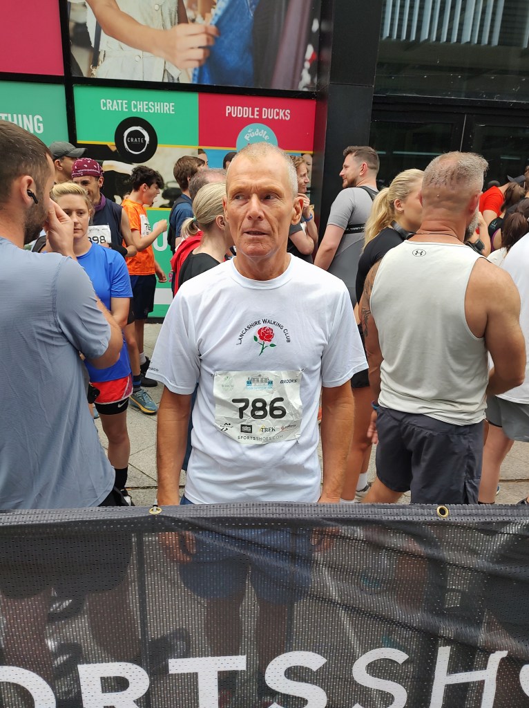 Nigel Shaw completed the Northwich 10 km in just over 65 mins in very humid conditions and a quite severe course on road and park. Walking in with excellent technique beating a least 1/2 the field.