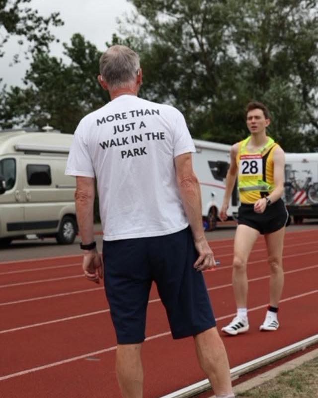 It was great having Martin Fisher as a Lancashire Walking Club partner in the race. Martin had come along with Phil Carroll who acted as his attendant.