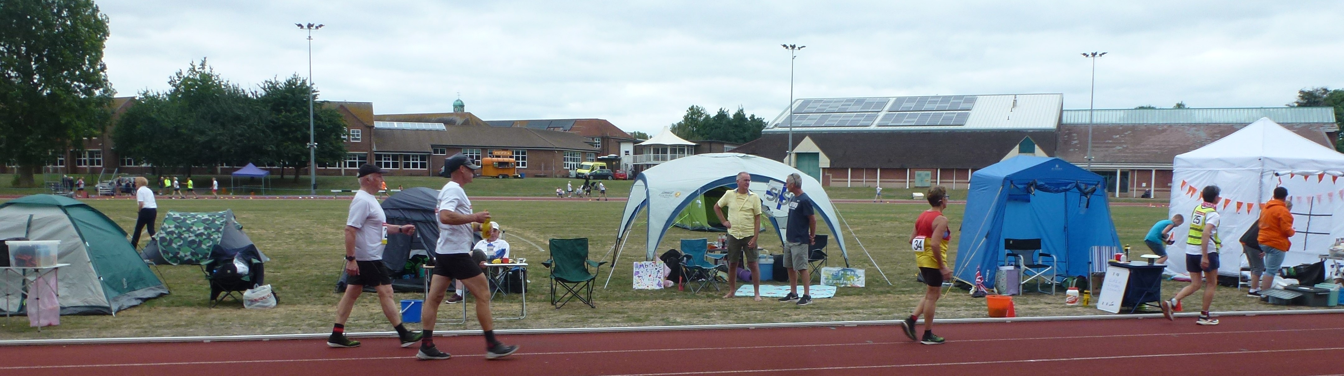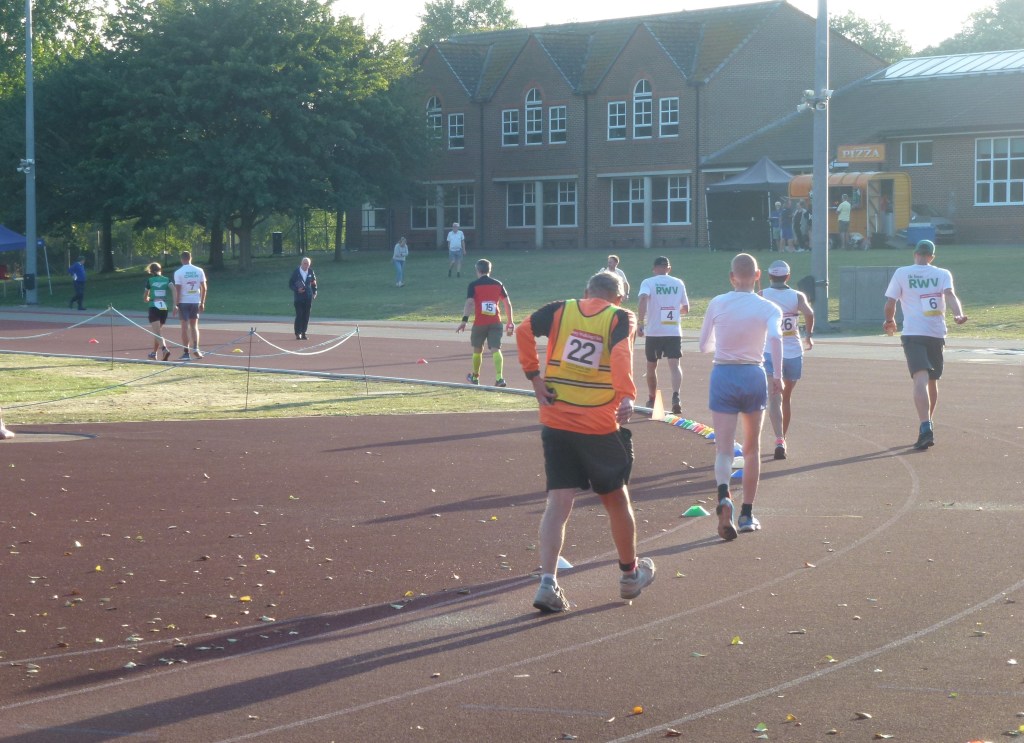 Another enjoyable feature of the weekend was the relay that took part alongside the 100. The relay competitors used the outside lanes. It was great to see so many Centurions taking part in this relay, a real ‘Who’s Who’ from the past. They included from our own club Ron Wallwork and Chris Bolton.