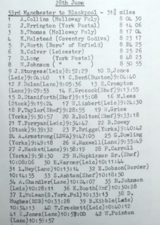 This was the year in which Mike Holmes after a long gap because of his diabetes went under eight hours and Tony Malone walked a fine race to finish 3rd.
