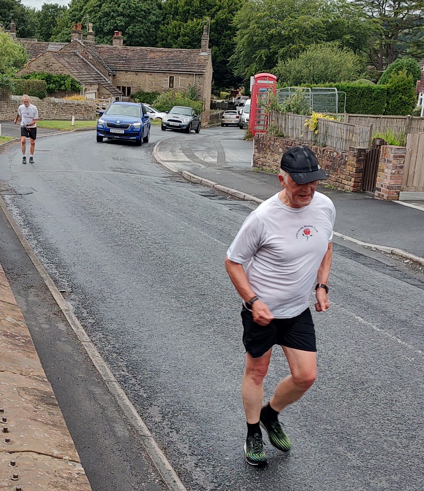 The scene was set for a battle between specialists on a very testing course giving the endurance walker an edge on the uphills and the “sprinter” the advantage on the downhills. Tony Bell regularly fills either winner or runner up spot in club races and this was no different , however, Martin Payne also has flat speed but in recent times has concentrated on marathon plus distances. At the 1 mile checkpoint Tony had the initiative but Martin was clearly just sitting in.